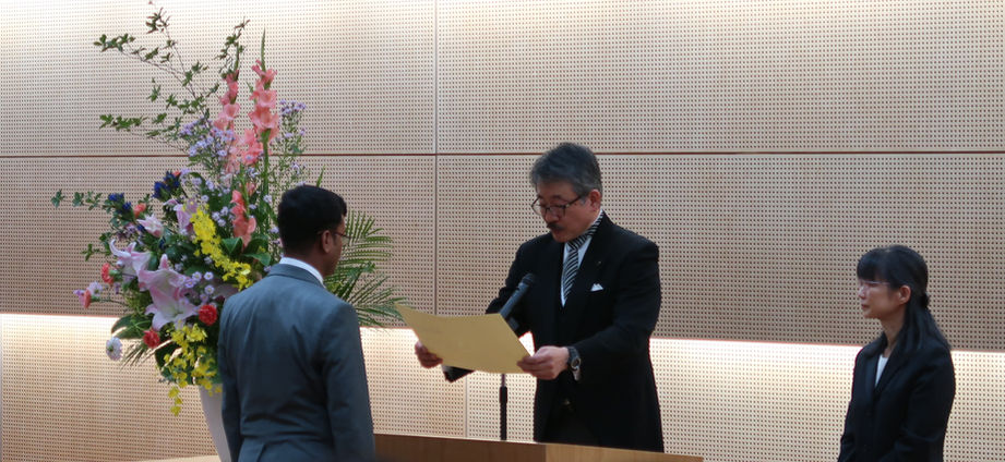 On 25 September, 2019, Graduation Ceremony was held at Tohoku University for the degree conferment of the graduating students from School of Engineering. Shafiul San, Ph.D. candidate and Son San, Master's student from Maeda laboratory attended the ceremony to receive their certificates. The ceremony was led by Prof. Tetsuya Nagasaka, Dean of School of Engineering,Tohoku University, who presented all the graduating students with their certificates. Following the degree conferment ceremony, he congratulated all the graduating students on their great achievement. He also mentioned that the newly graduating students will enter into professional life and he believe that they will act as global leaders whose mission will be to contribute to the welfare of mankind as well as the society.