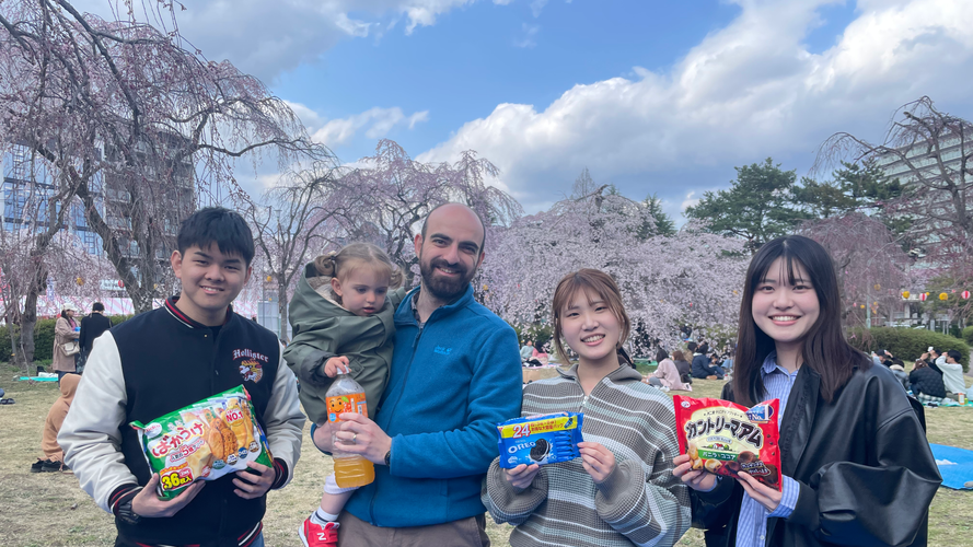 セインさんのご家族も参加され、先生や職員、学生で海鮮丼や桜餅、お菓子をいただきながら交流をしました。
